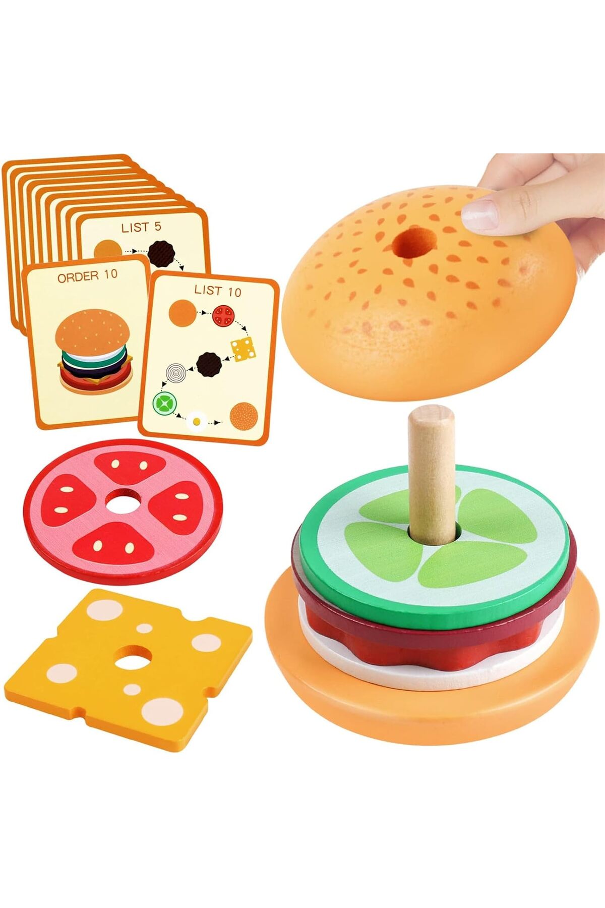 ميزات لعبة تكديس البرجر الخشبية من Generic