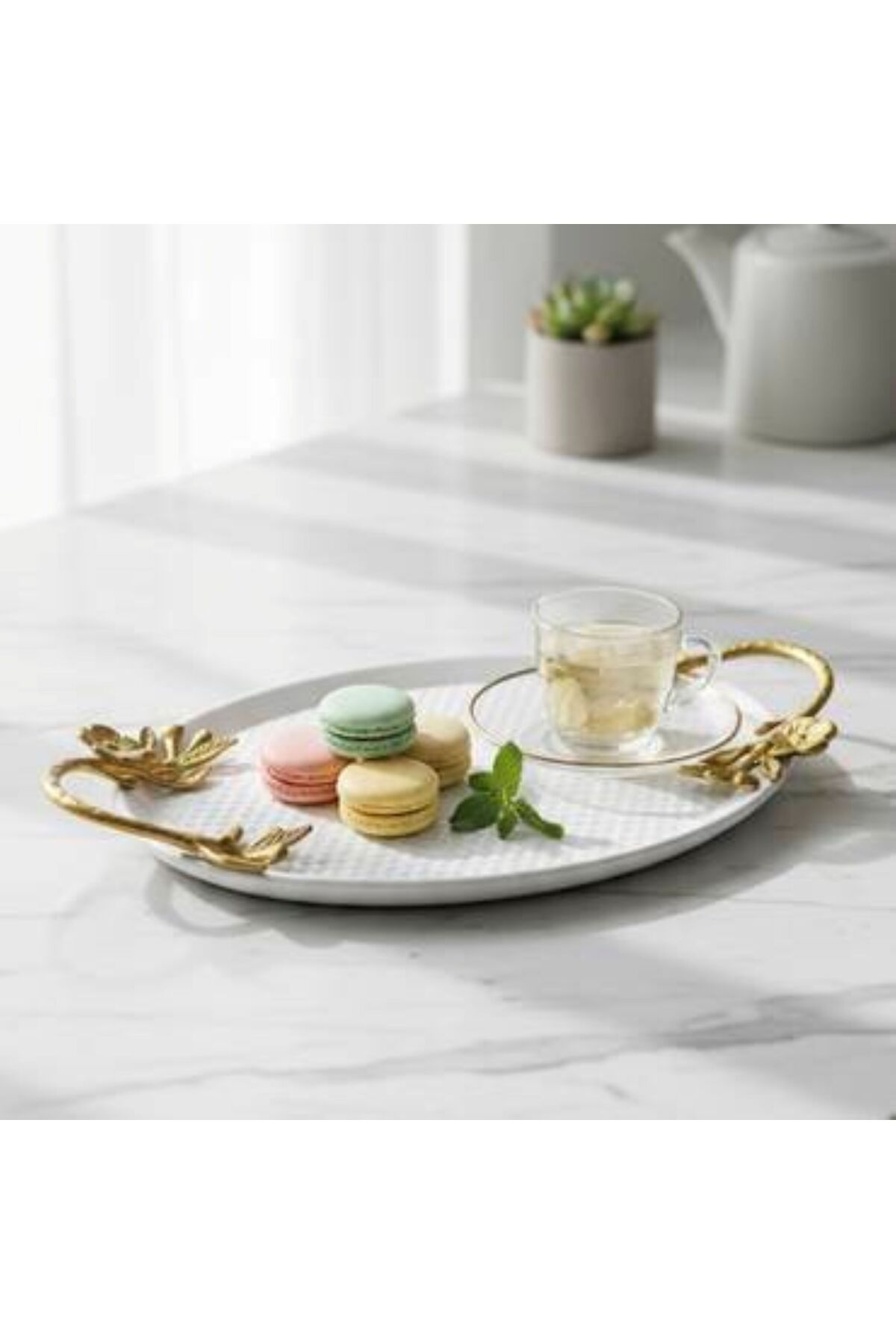 ميزات صينيه معدن للضيافه والتقديم لون ابيض من Generica