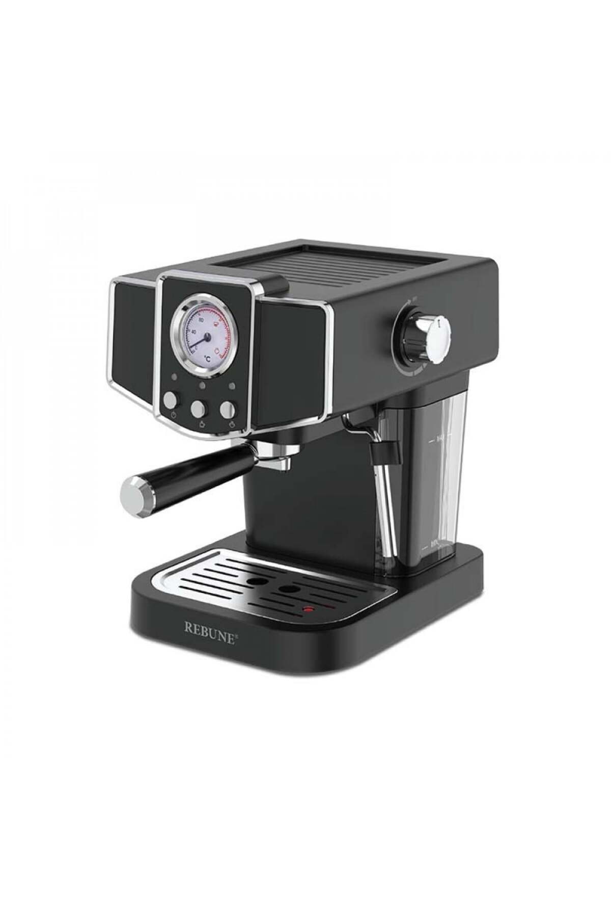 Removable water tank, pressure gauge, hot water function, milk frothing/crema maker, two filter baskets of different sizes