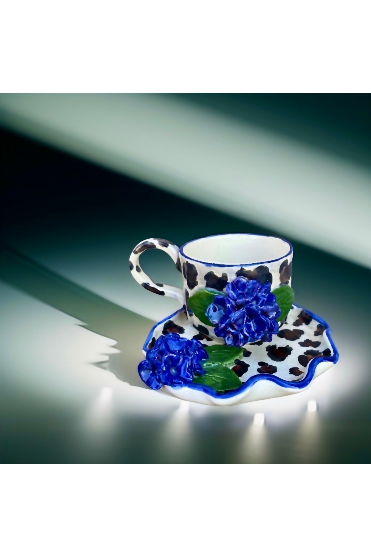 Gesto seramik طبق كأس منقوش بنقشة الفهد