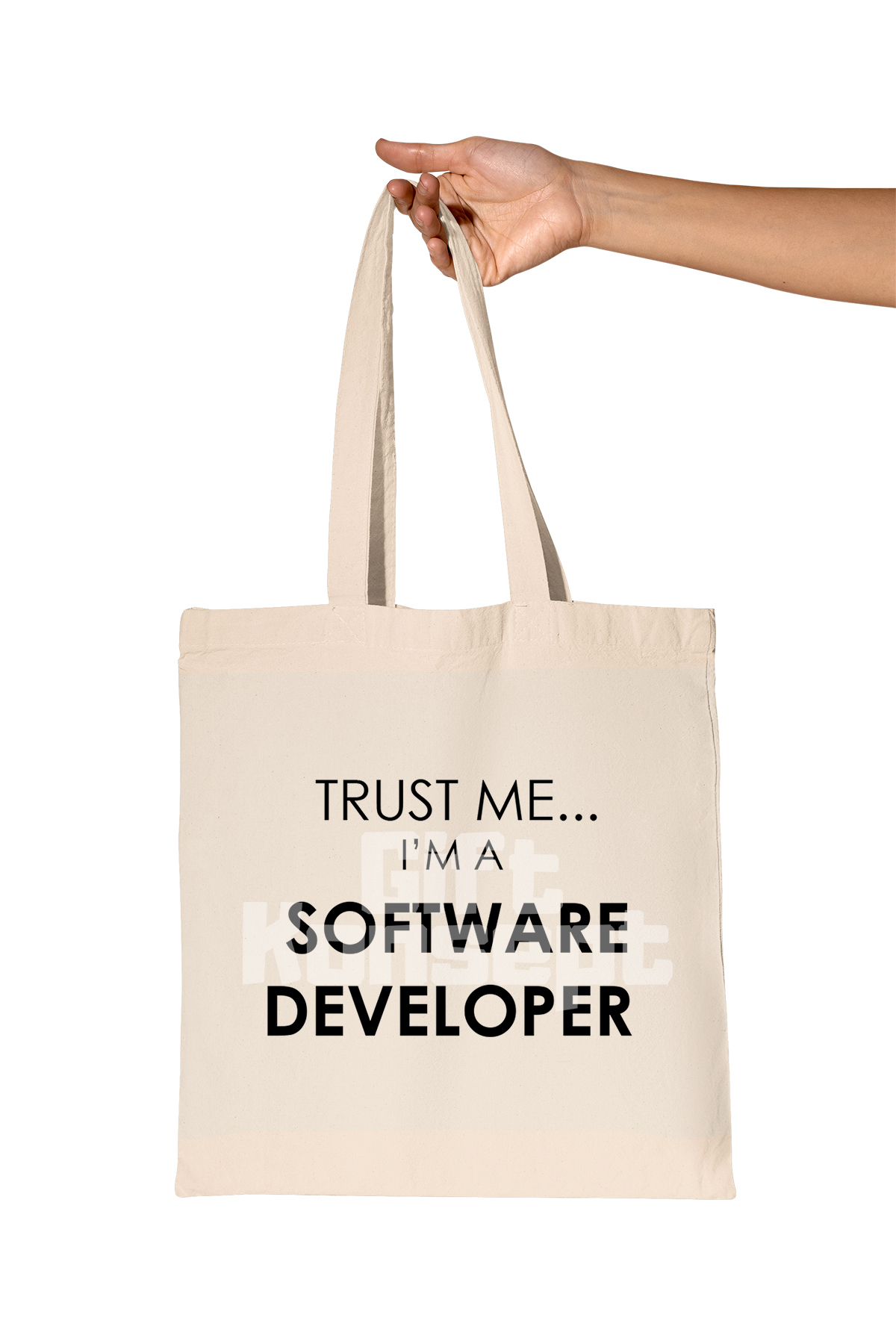 ميزات ثق بي، أنا مطور برامج، حقيبة من القماش الخام العضوي مطبوعة من giftkonsept