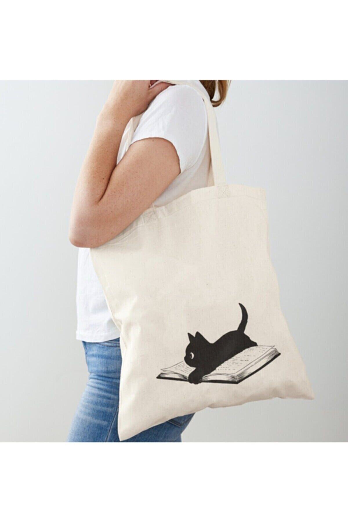GİFTORA كتف من القماش الخام بتصميم قطة مكتوبة