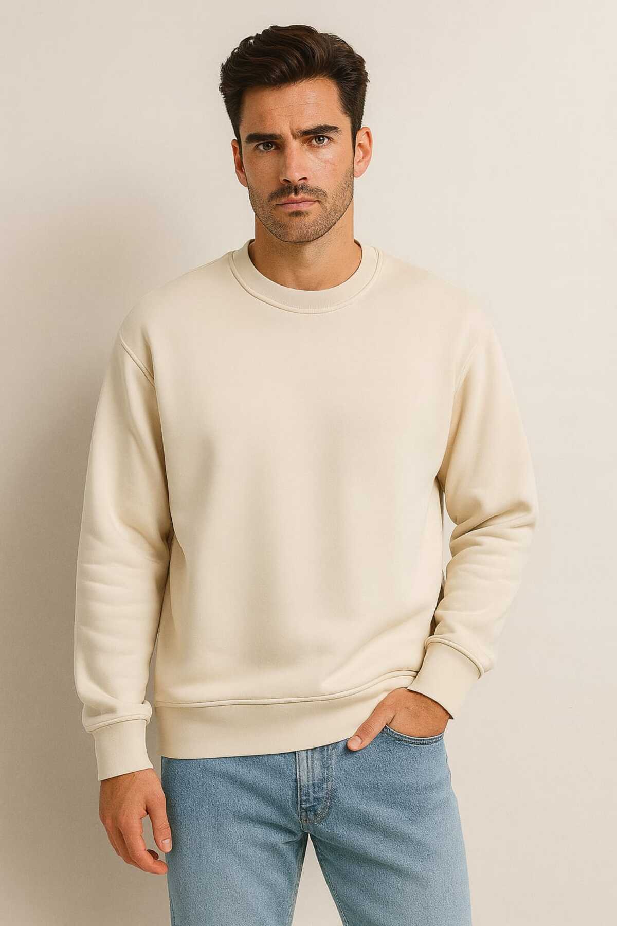 gigigiyim سويت شيرت رجالي كبير الحجم ذو ثلاثة خيوط بلون واحد