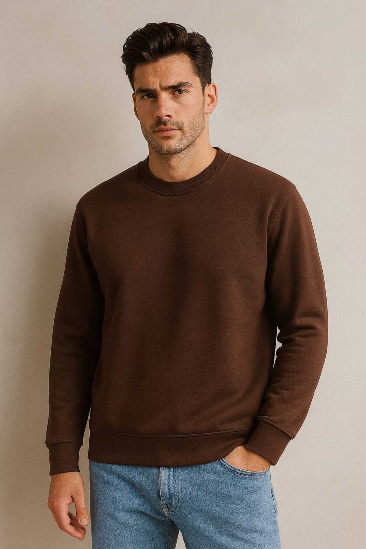 gigigiyim سويت شيرت رجالي كبير الحجم ذو ثلاثة خيوط بلون واحد