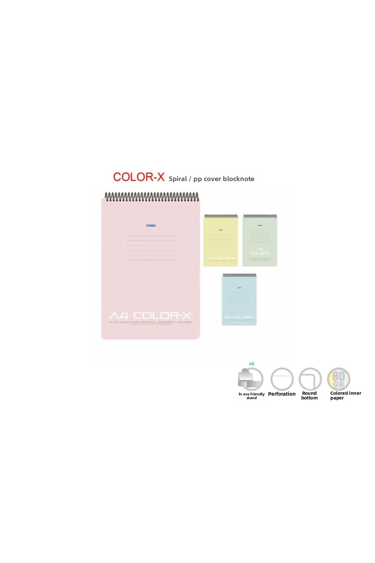 ميزات Color-x A4 80 ورقة دفتر ملاحظات حلزوني علوي مخطط من Gıpta
