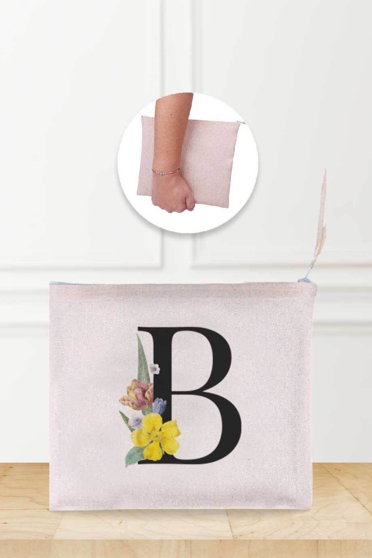 ميزات حقيبة مكياج من الكتان منقوشة بحرف B من Gizeo Concept