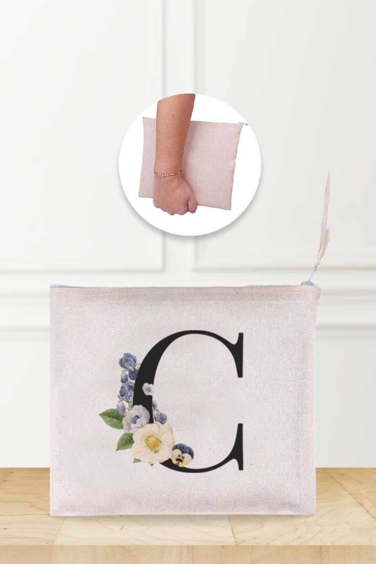 ميزات حقيبة مكياج من الكتان منقوشة بحرف C من Gizeo Concept