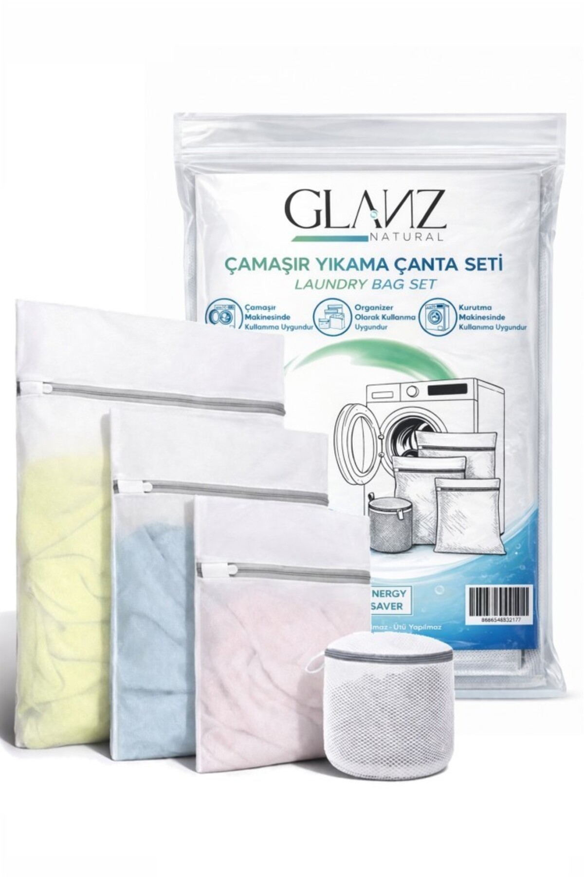 Glanz مجموعة شبك غسيل الملابس، مجموعة من 4 أكياس غسيل الملابس