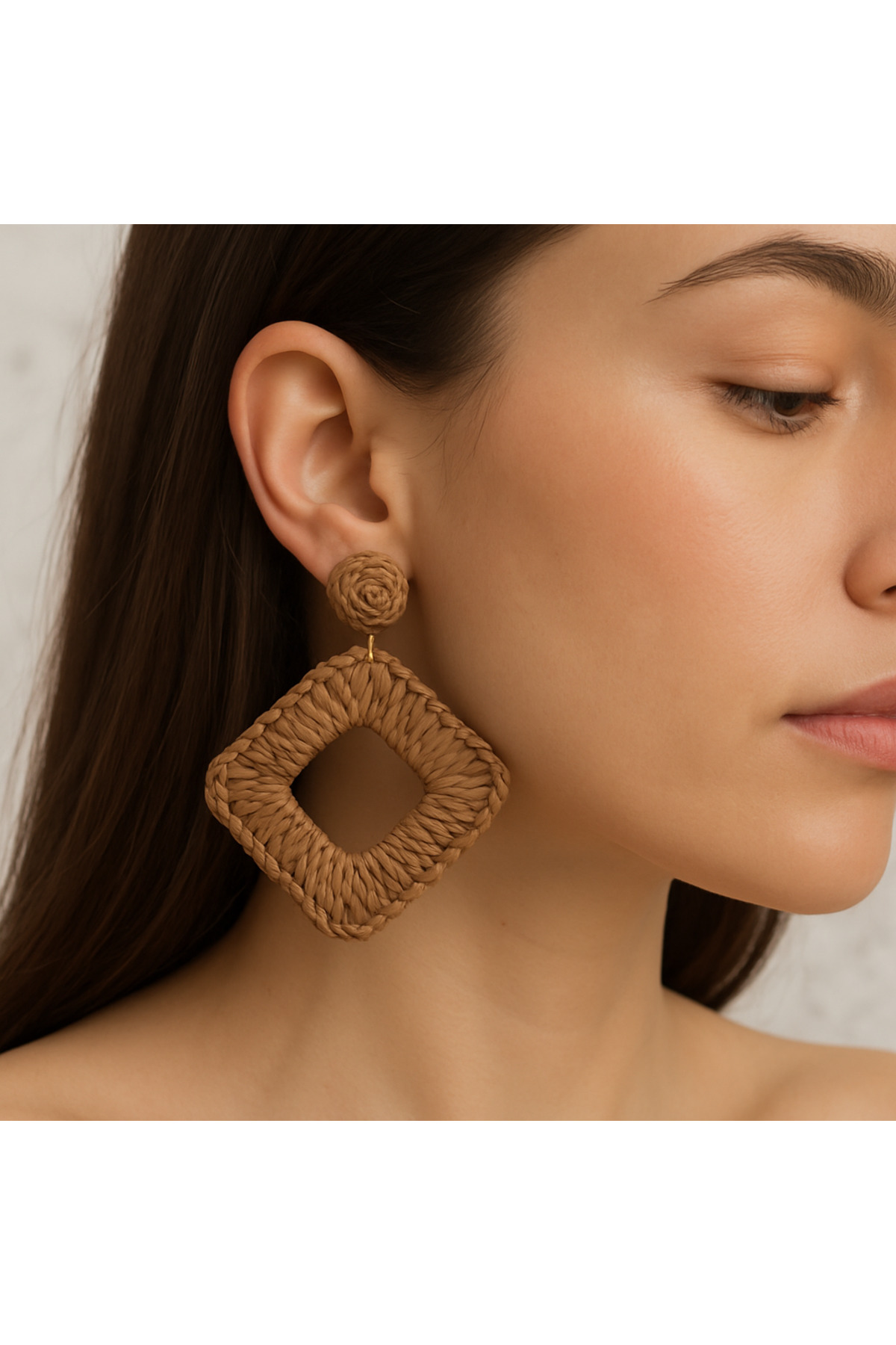 Glithe أقراط نسائية من القش باللون البني