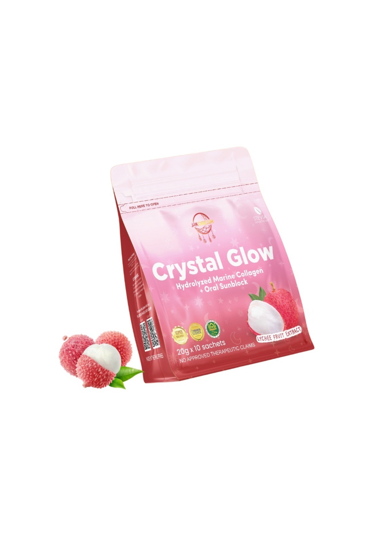 Glowwing مزيج الكولاجين البحري المُحلل من كريستال جلو مع الجلوتاثيون ومستخلص الليتشي، 10 أكياس