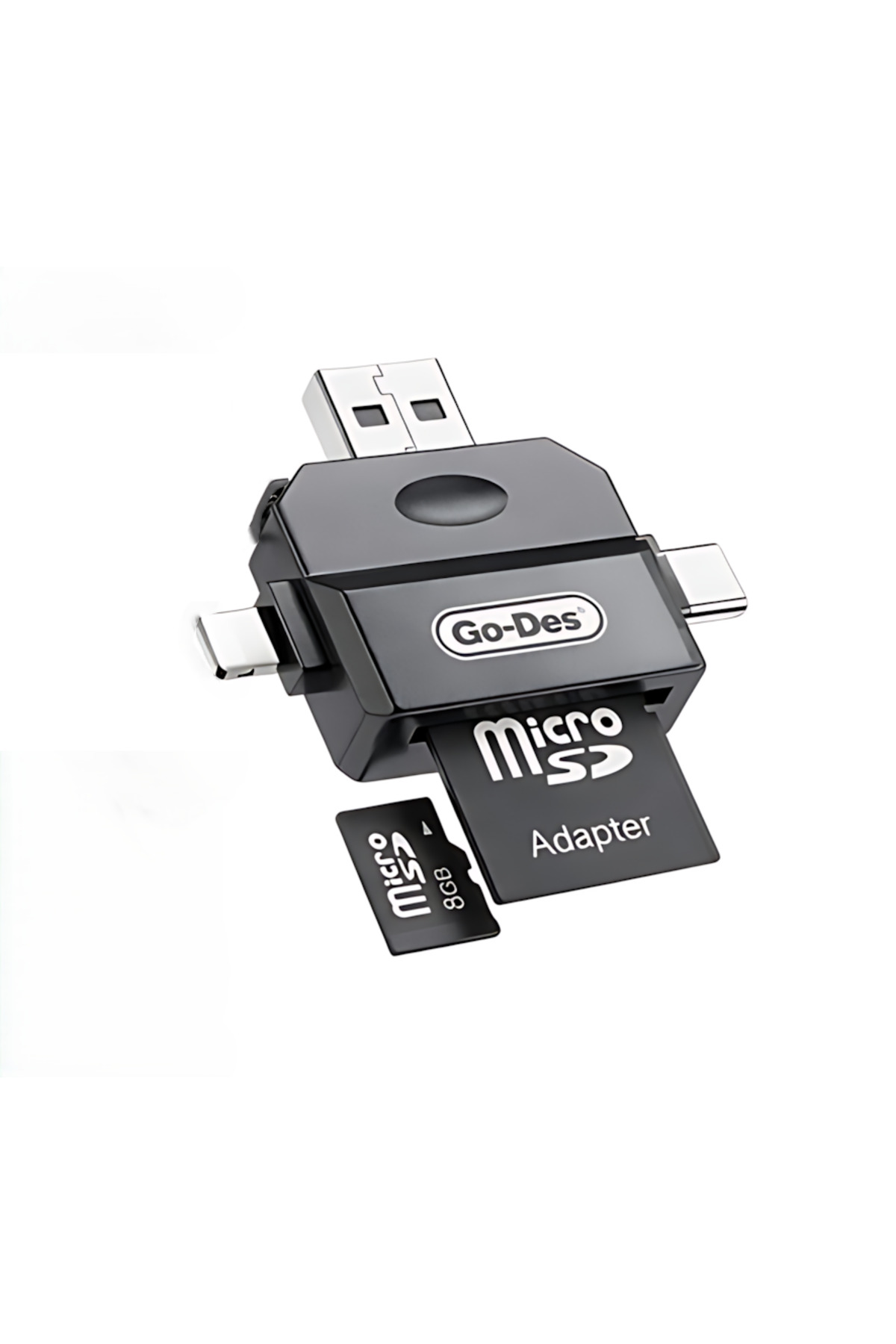 Go-Des قارئ ذاكرة 5 في 1 متعدد المنافذ 5-in-1 Card Reader USB + Type C + Lightning + SD + Micro SD