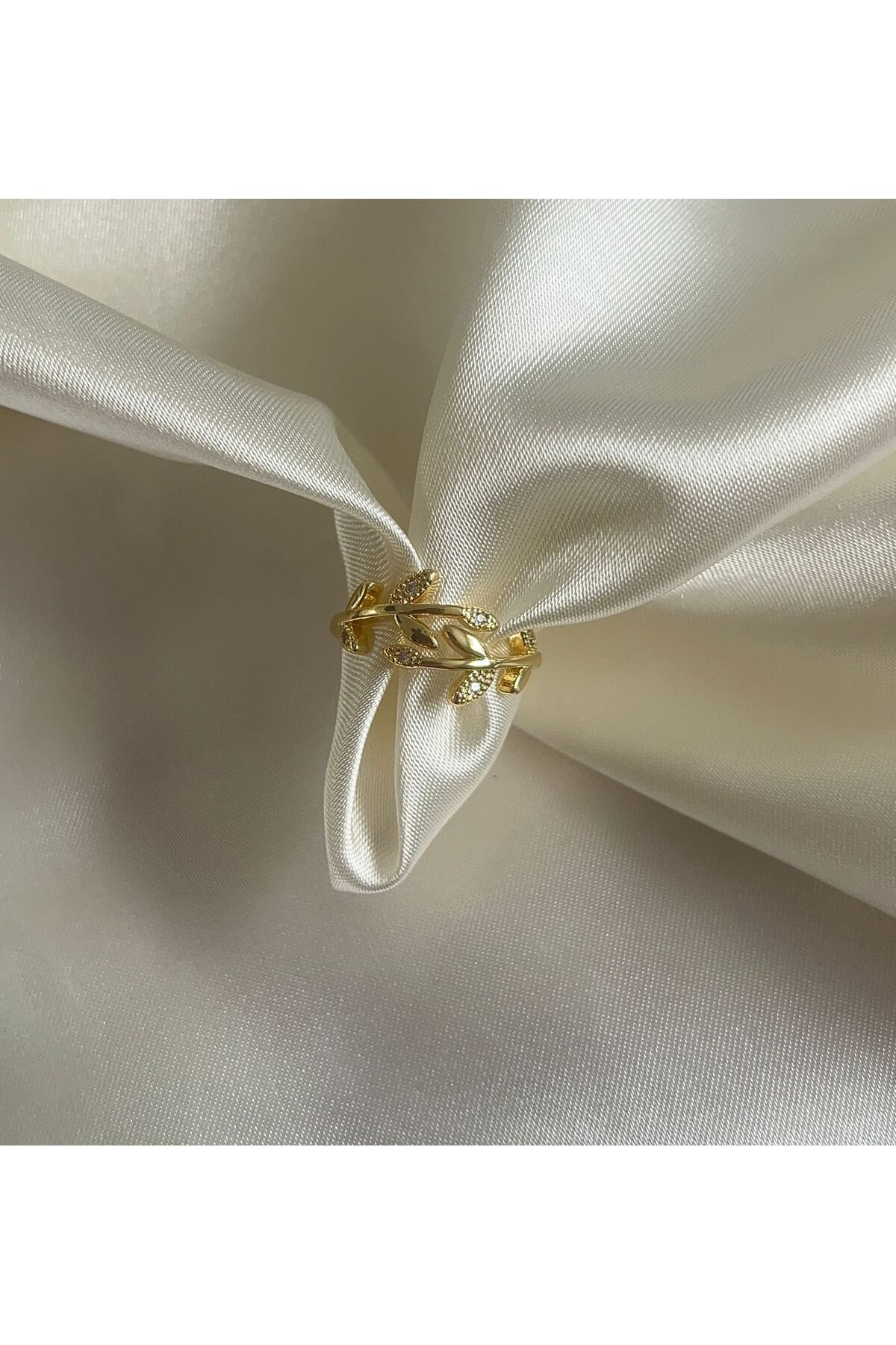 ميزات خاتم من حجر الزركون قابل للتعديل بنمط أوراق الشجر باللون الذهبي من Goche