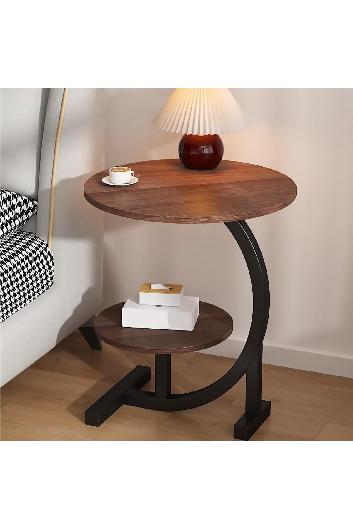 Golden Bark طاولة تقديم قهوة، طاولة جانبية، على شكل حرف C، متعددة الاستخدامات / بني