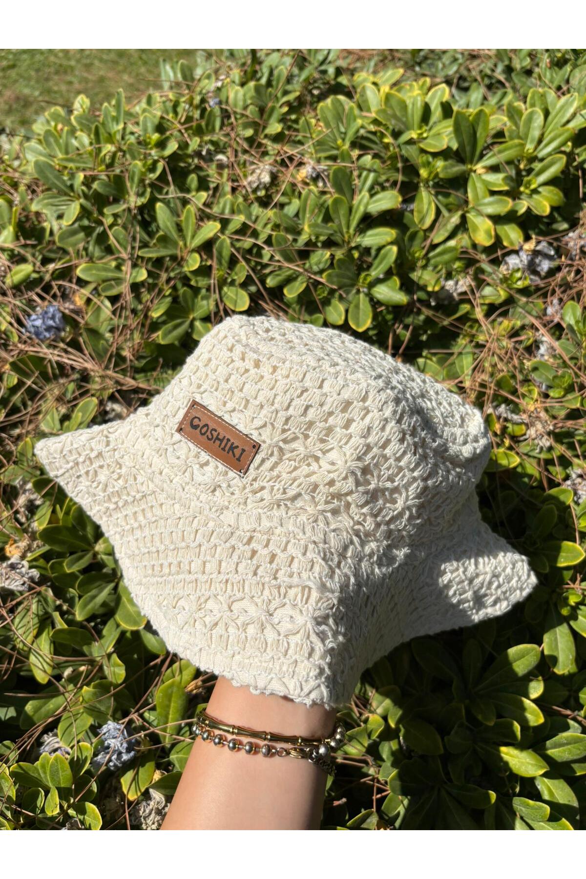 ميزات قبعة بيضاء محبوكة من Goshıkı