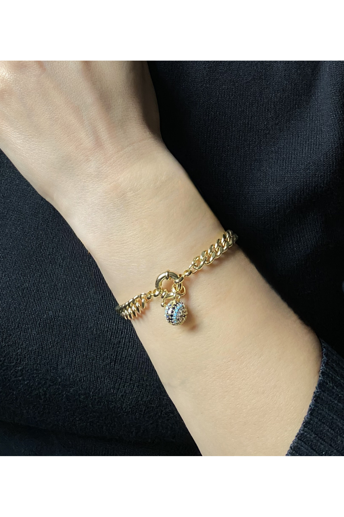 ميزات سوار سلسلة قابل للقفل مزين بخرز العين الشريرة من GOX