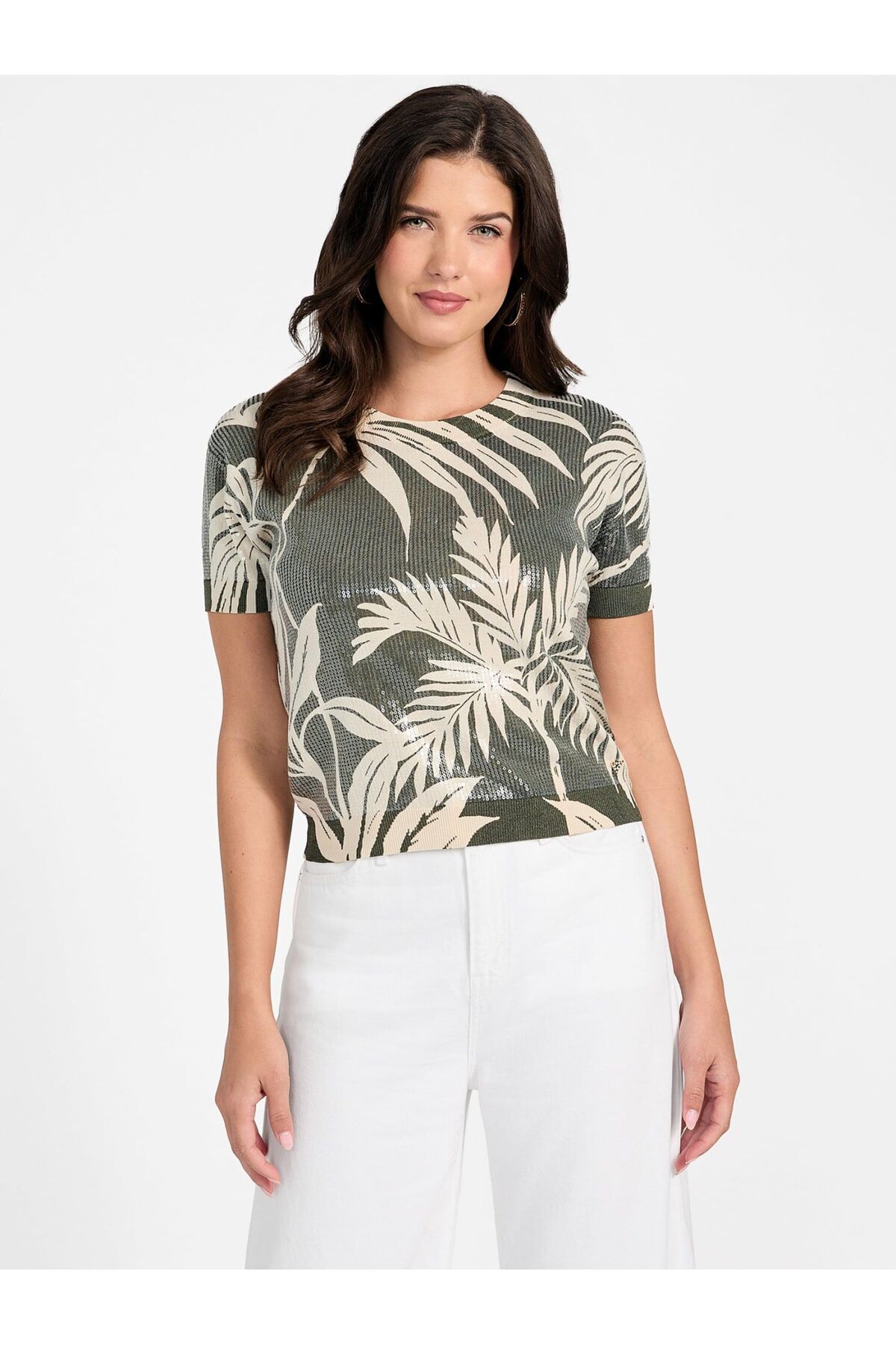 ميزات كنزة قصيرة بقصة قصيرة بالترتر من Guess