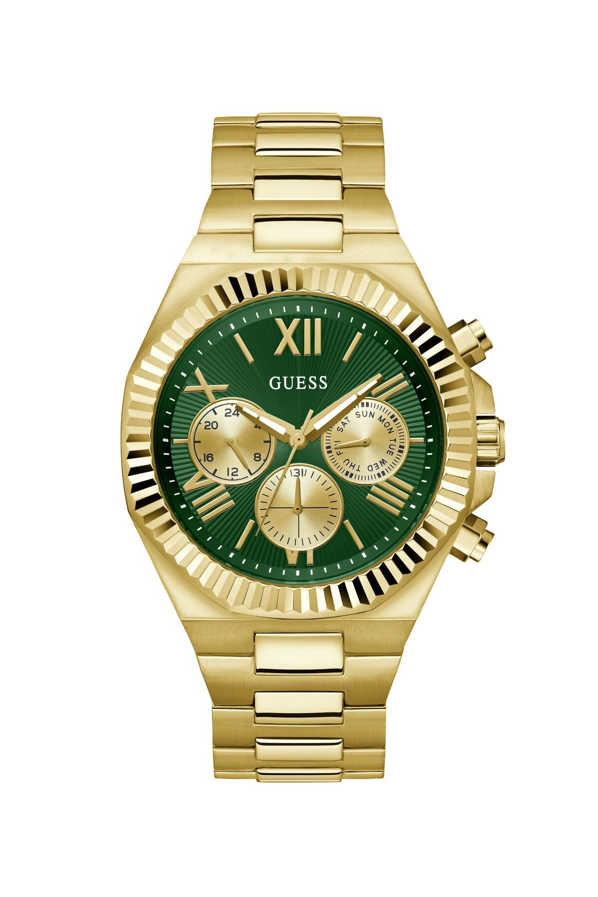 ساعة يد رجالية جيس GUGW0703G2 تجمع بين الأناقة والعملية، مما يجعلها الخيار المثالي للرجال العصريين الذين يسعون للتميز في إطلالاتهم اليومية والمناسبات الخاصة. يأتي تصميم هذه الساعة بمظهر فخم يجمع بين اللون الأخضر الجذاب والذهب اللامع، مما يوفر لمسة من الفخامة والجرأة في آن واحد.