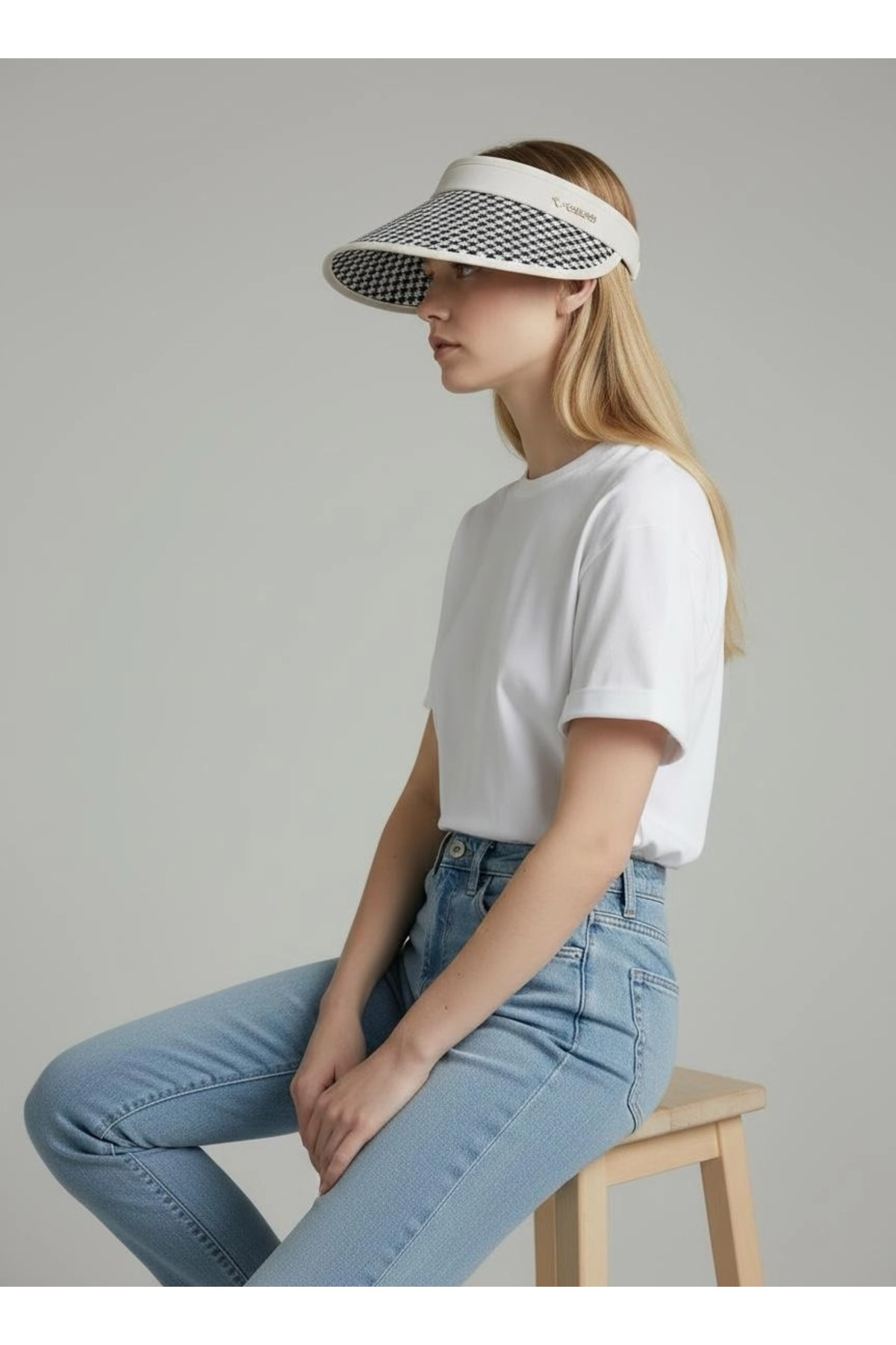 Gullfoss قبعة بيضاء بنمط دقيق منقوش على شكل ريش الغراب مع حاجب قابل للتعديل