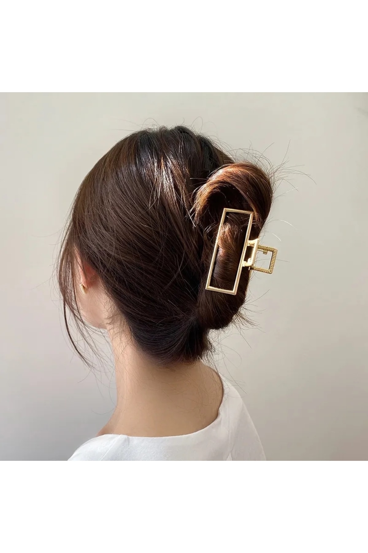 GÜLPEŞE مشبك شعر مزلاج معدني ذهبي مستطيل