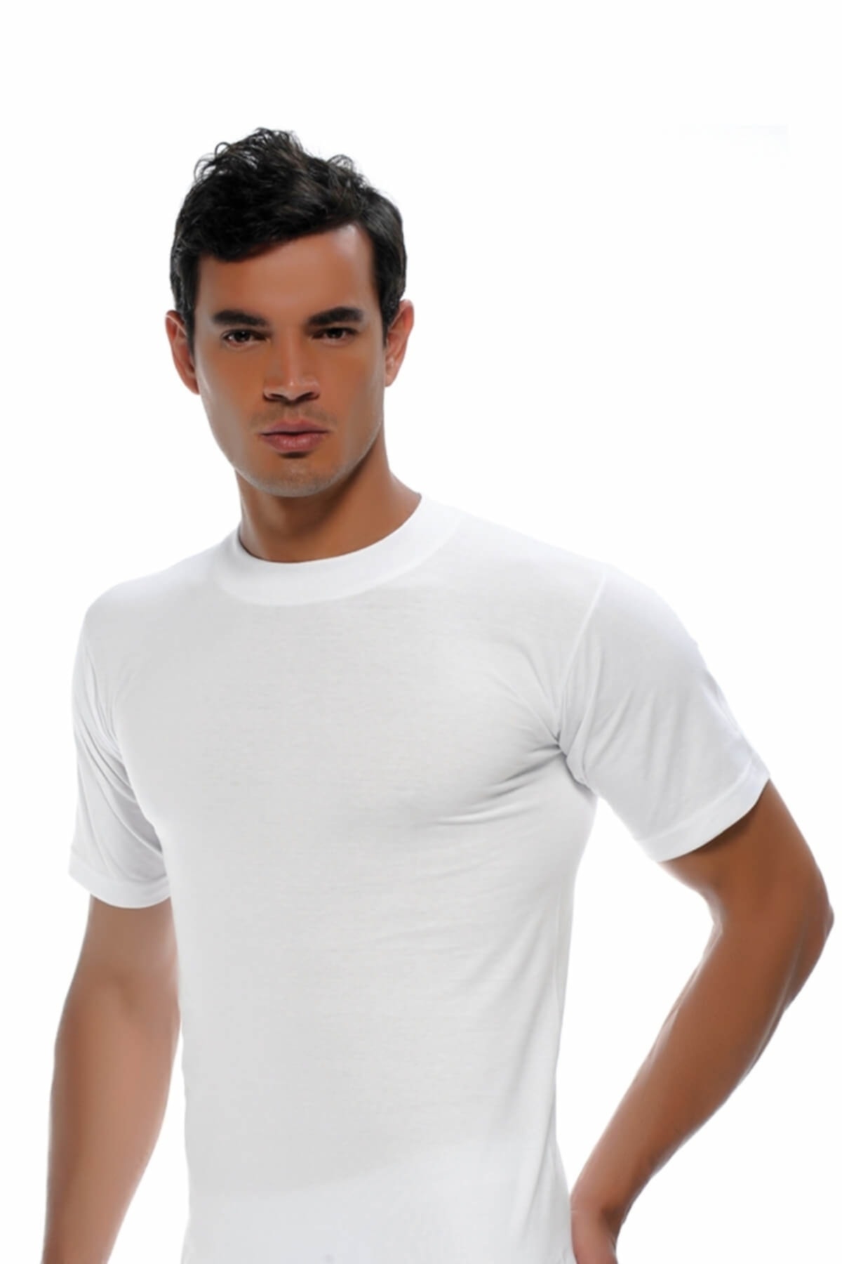 ميزات قميص داخلي أبيض برقبة دائرية للرجال من GÜMÜŞ