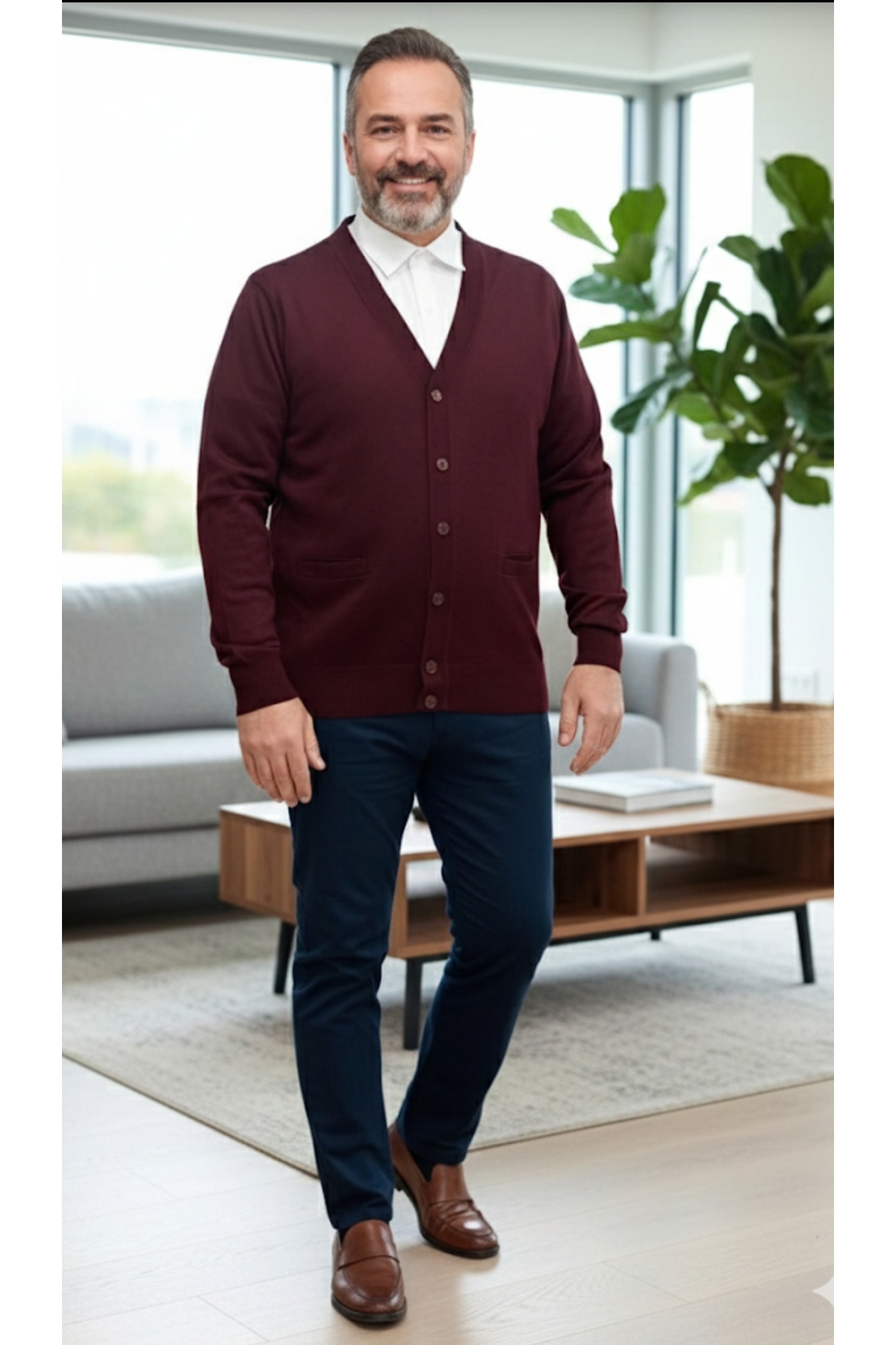 güncüoğlu سترة تريكو رجالية رفيعة من الصوف بأزرار