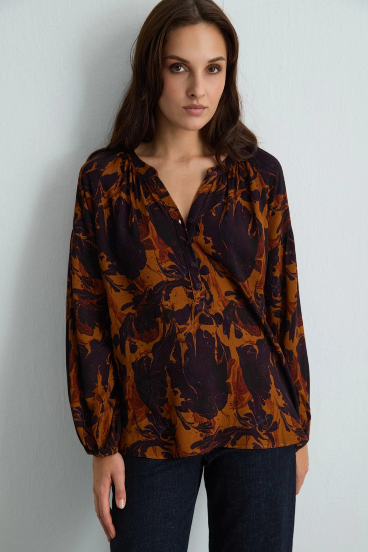 ميزات بلوزة فيسكوز منقوشة من مجموعة أنكا - لون البرقوق من Gusto