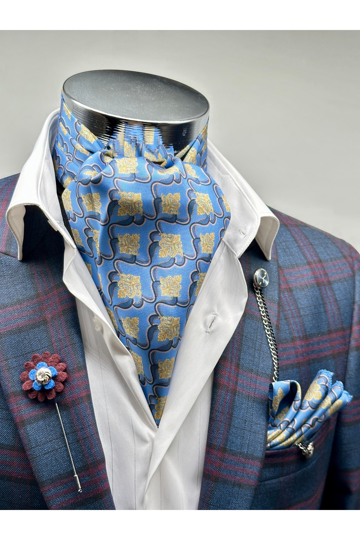ميزات وشاح رجالي منقوش باللون الأزرق من Gutiero