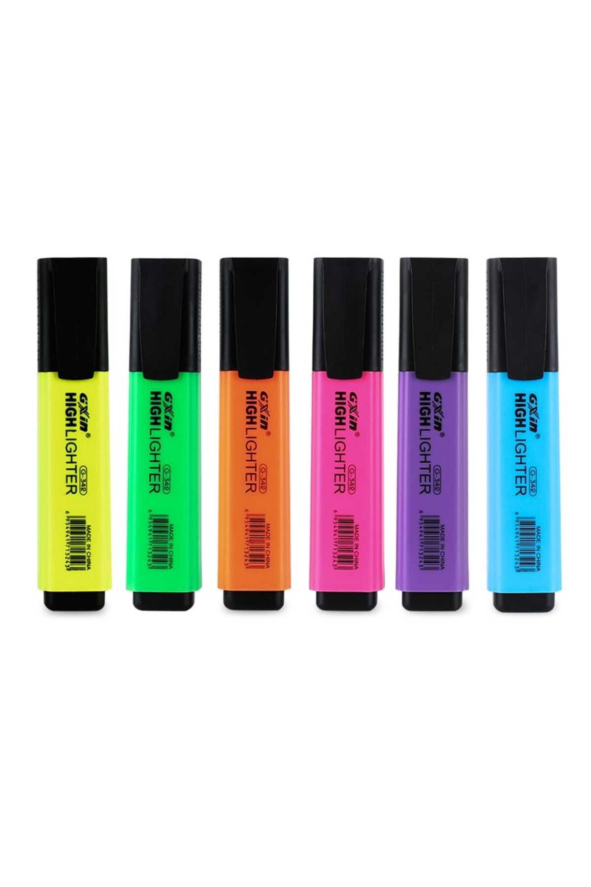 gxin مجموعة أقلام هايلايتر مفعمة بالحيوية مكونة من 6 ألوان موديل كلاسيكي