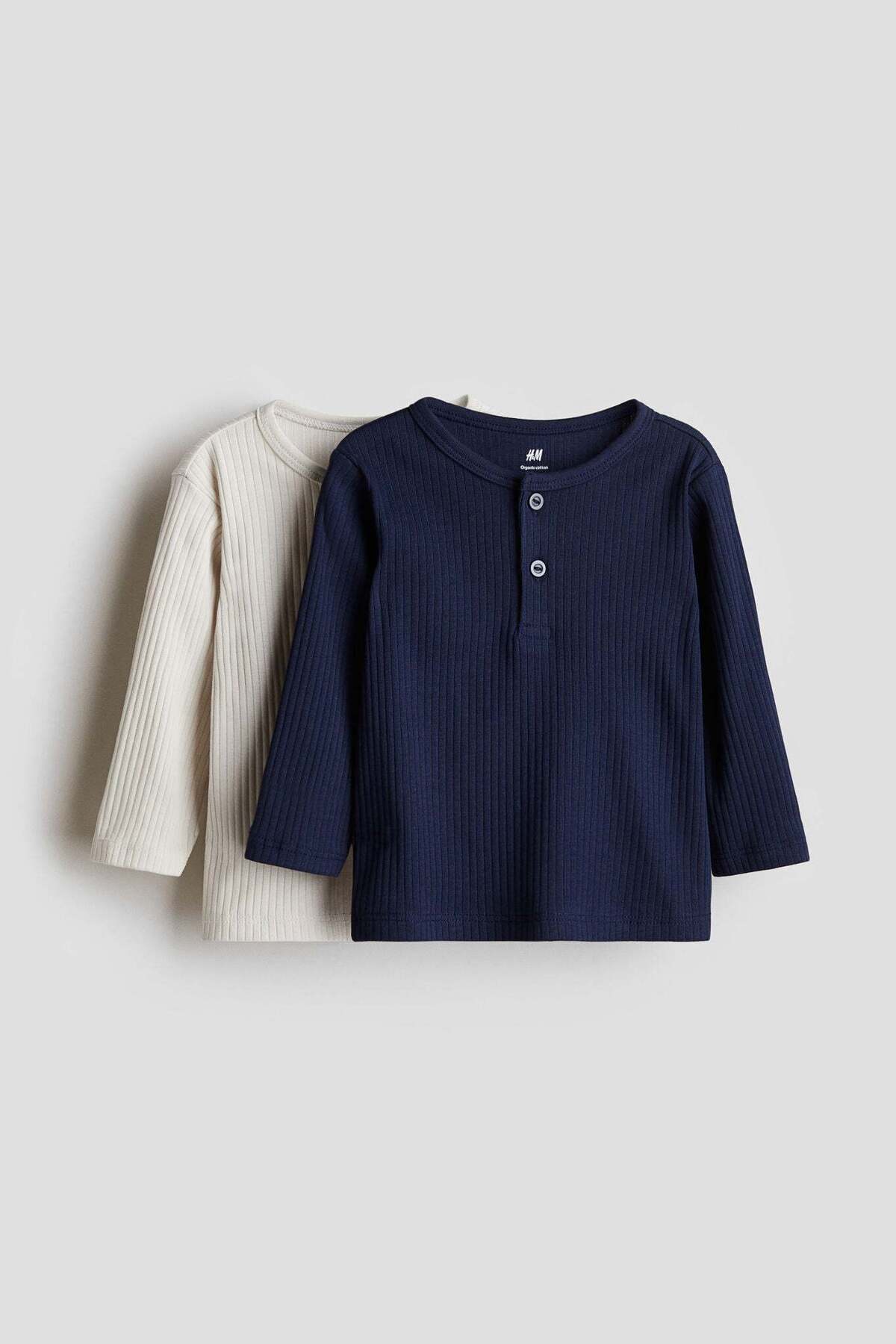 تتميز H&M قطعتان من القميص الجيرسي المضلع بقماش الجيرسي القطني الناعم الذي يوفر شعورًا مريحًا على البشرة، مما يجعله مثاليًا للاستخدام اليومي. القماش قابل للتنفس، مما يساعد في الحفاظ على درجة حرارة الجسم في الأجواء الحارة.