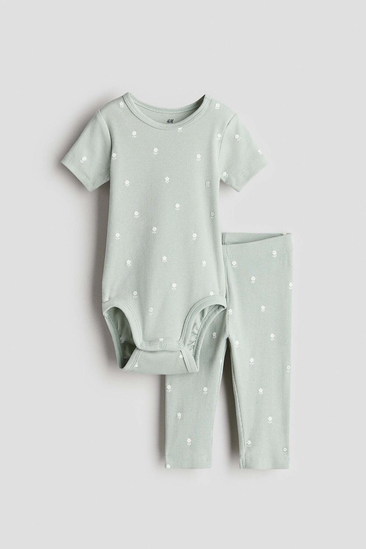 ميزات طقم قطني مضلع مكون من قطعتين من H&M