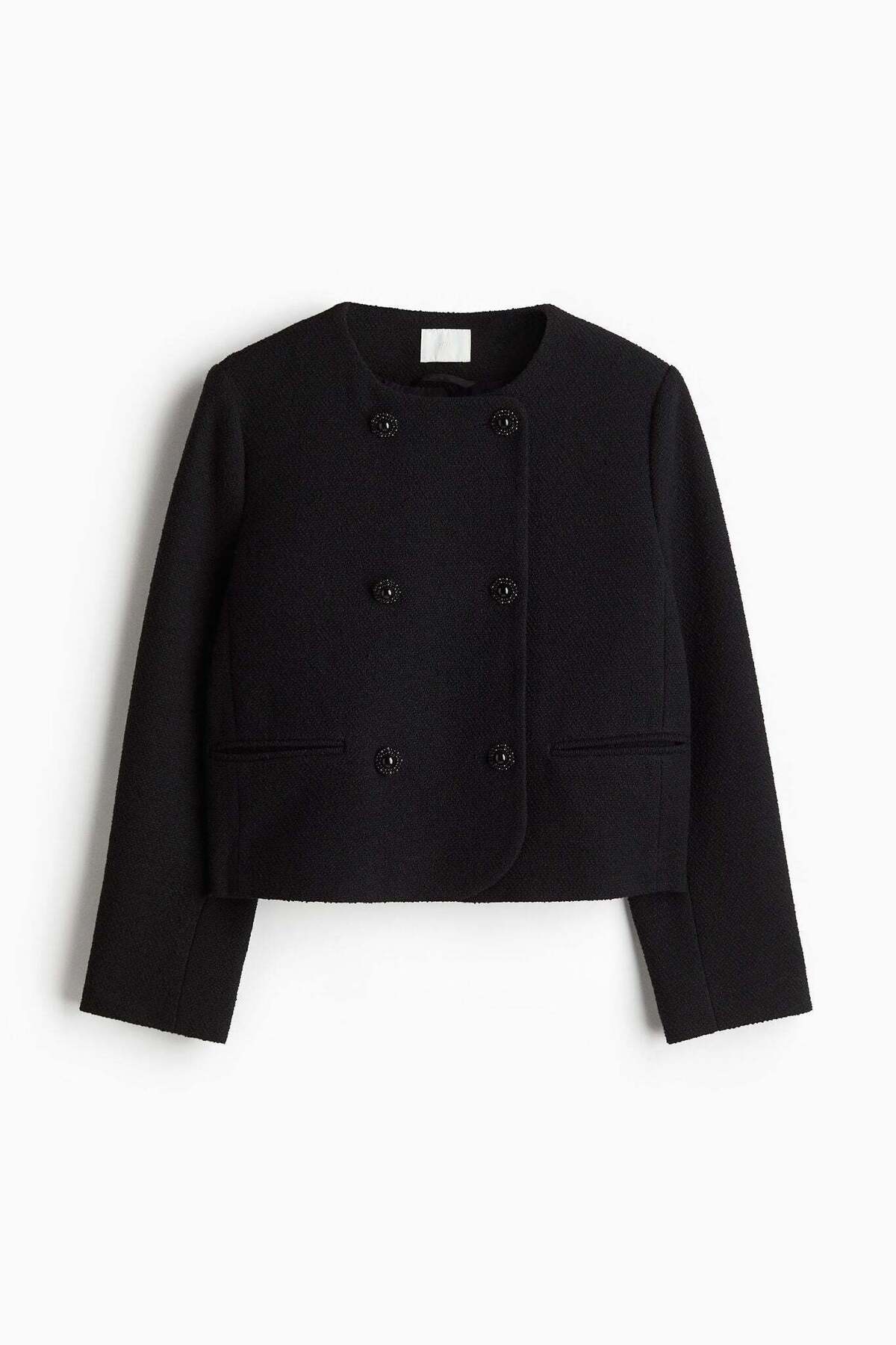 "ما هي تفاصيل التصميم في H&M سترة مزدوجة الصدر؟"