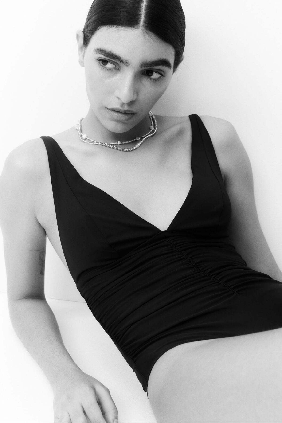 تعتبر ملابس السباحة ذات الشكل الثابت من اتش آند ام خيارًا مثاليًا للسيدات اللواتي يبحثن عن مزيج من الأناقة والراحة. يتميز هذا التصميم بفتحة رقبة على شكل حرف V، مما يمنح إطلالة جذابة وعصرية، بالإضافة إلى تأثير تشكيل ثابت على الخصر الذي يعزز جمال القوام. حمالات الكتف القابلة للتعديل تضمن لك الراحة والدعم اللازم أثناء السباحة أو الاسترخاء على الشاطئ.