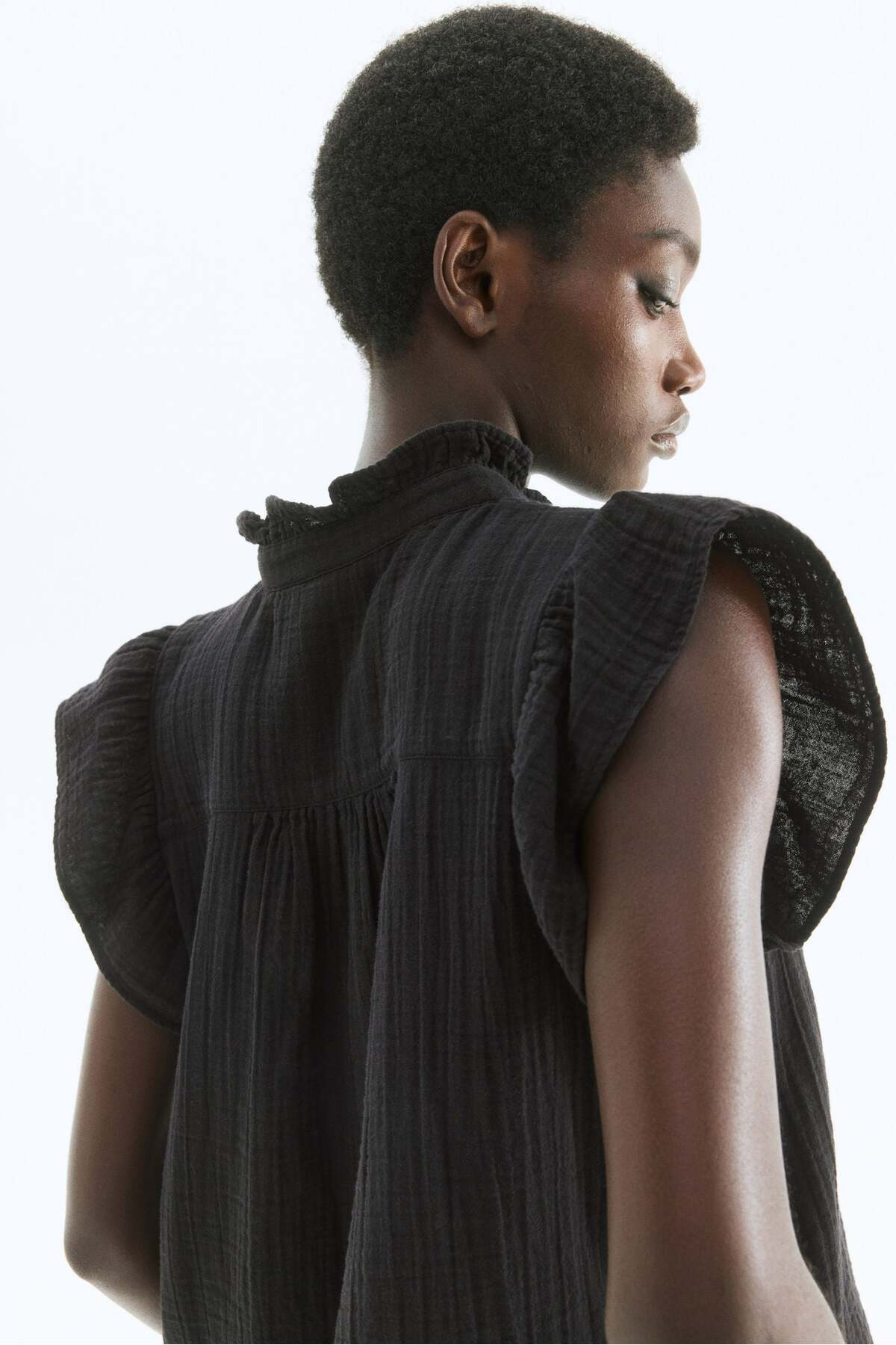 ميزات بلوزة موسلين بأكمام مطوية من H&M
