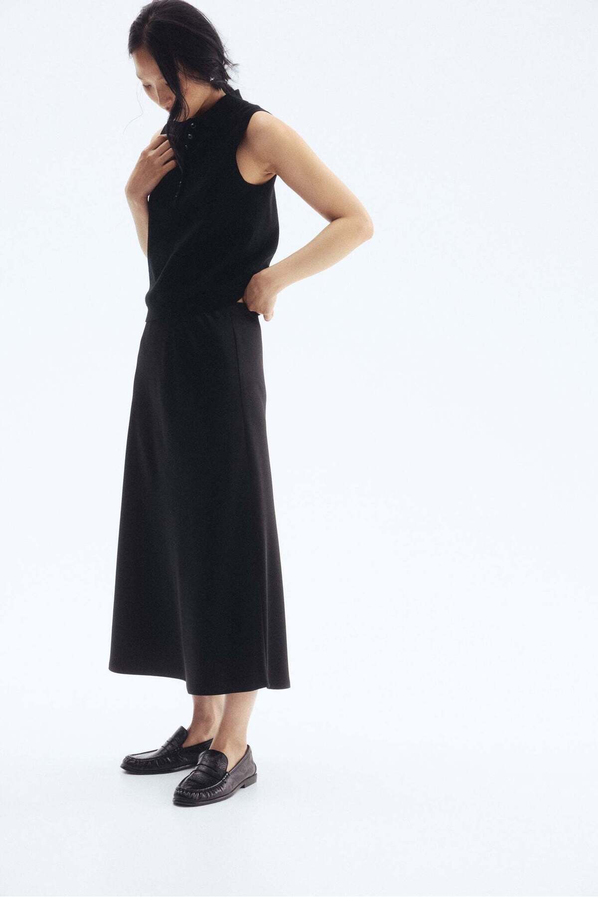 تنورة ميدي من إتش أند إم تتميز بأناقتها وراحتها، مما يجعلها خيارًا مثاليًا للنساء في الخليج. تجمع هذه التنورة بين الحداثة والتصميم العصري، مما يجعلها مناسبة لمختلف المناسبات، سواء كانت للعمل، أو للتسوق، أو حتى للمناسبات الخاصة. الطول المناسب للتنورة يجعلها قطعة مثالية تعكس الأناقة المحتشمة التي تفضلها العديد من النساء في المنطقة.