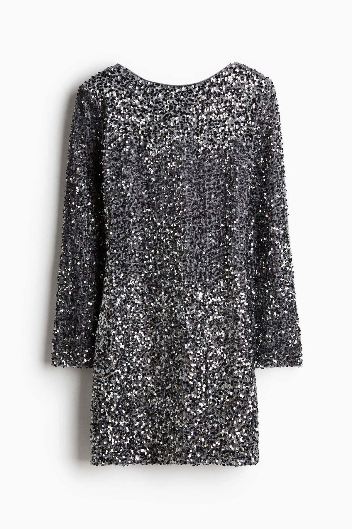 ميزات فستان مطرز بالترتر وظهر عميق من H&M