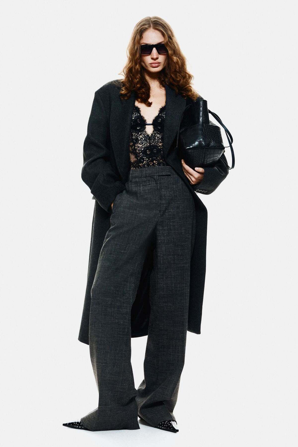 ميزات بنطلون من مزيج الصوف بقصّة واسعة من H&M