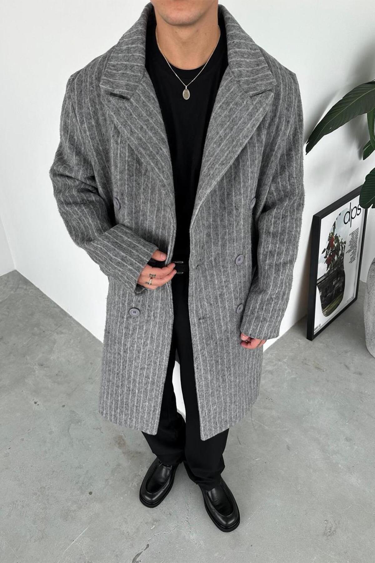 HAFKA معطف كاش مايوه مخطط أساسي فاخر باللون الرمادي