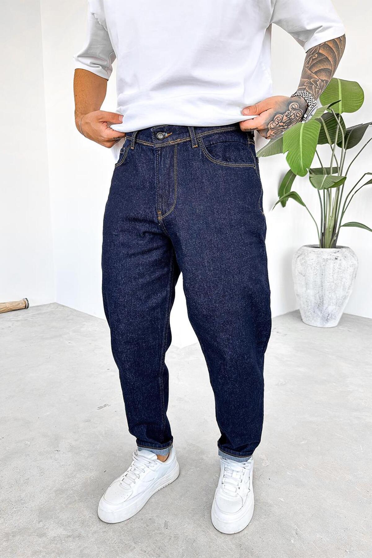 HAFKA بنطال جينز أصلي أساسي عادي باللون الأزرق
