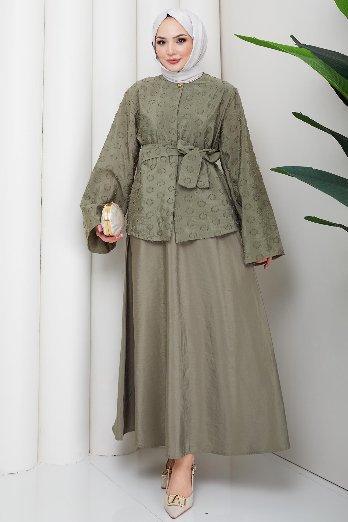 ميزات طقم مزدوج بنقش حلقي منقوش باللون الكاكي HM2881 من hafsamina