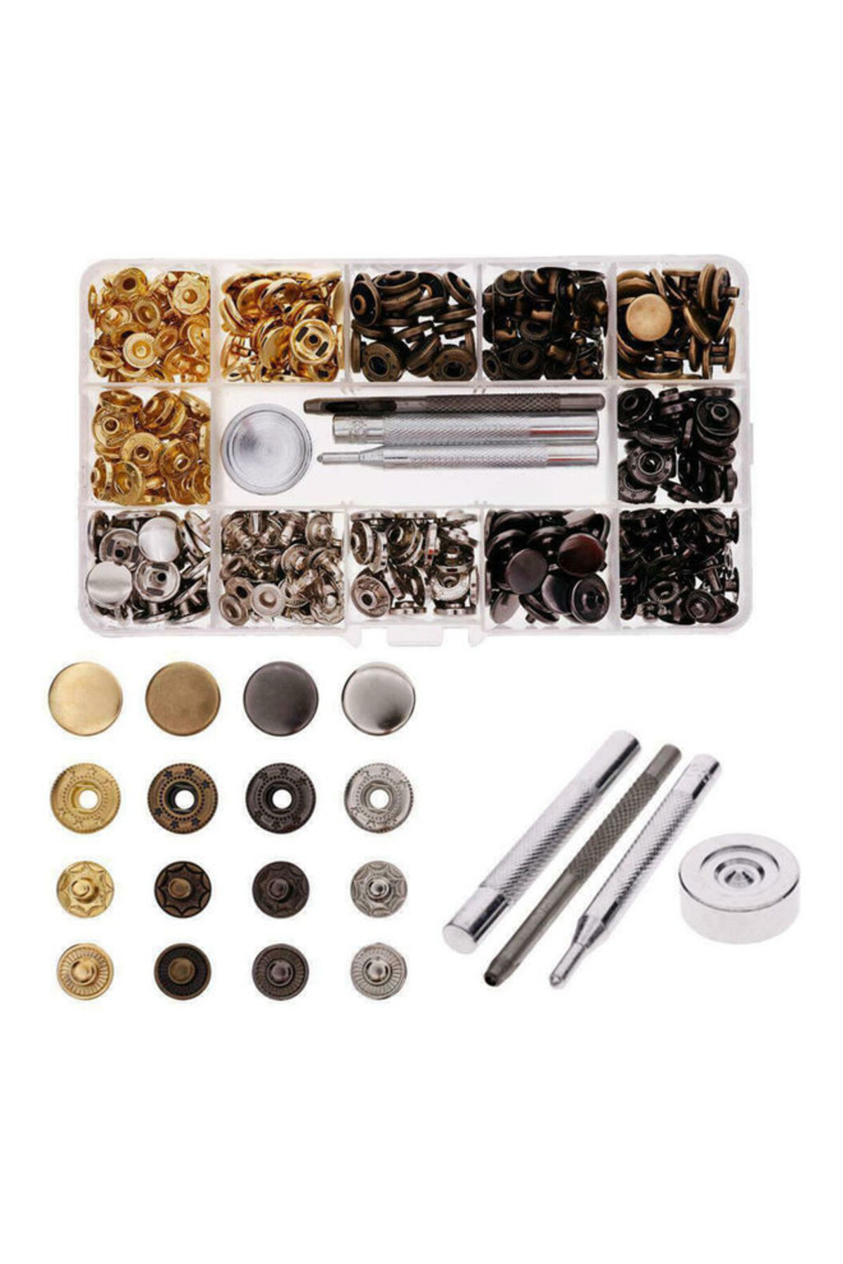 HALAMODO طقم 120 قطعة من أزرار الكبس الجلدية متعددة الألوان