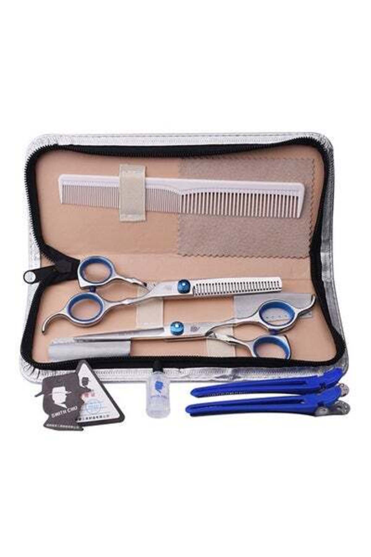 ميزات طقم مقص بشفرة أسنان مسطحة فضي/أزرق من HALAMODO