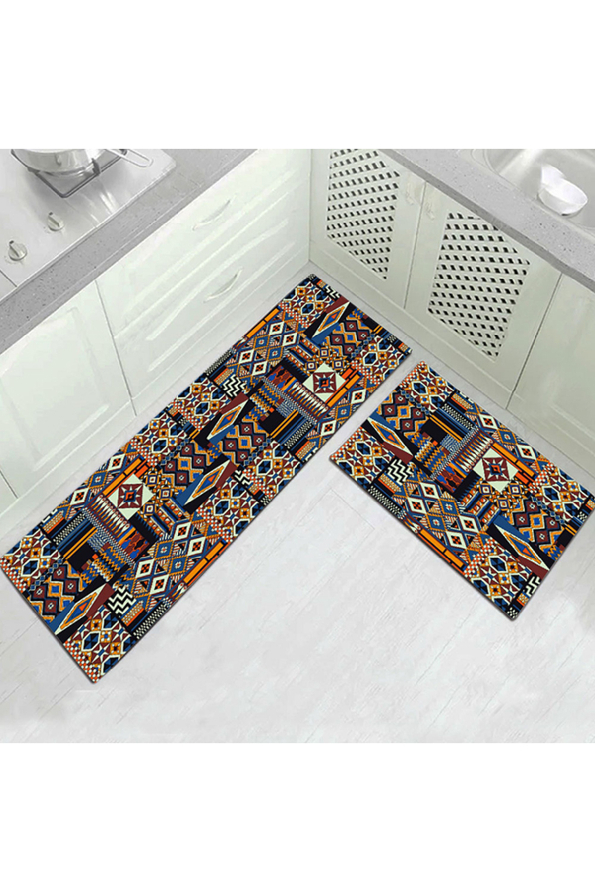 ميزات سجادة أرضية مطبخ متعددة الألوان بنمط غير منتظم 50 × 160 سم من HALAMODO