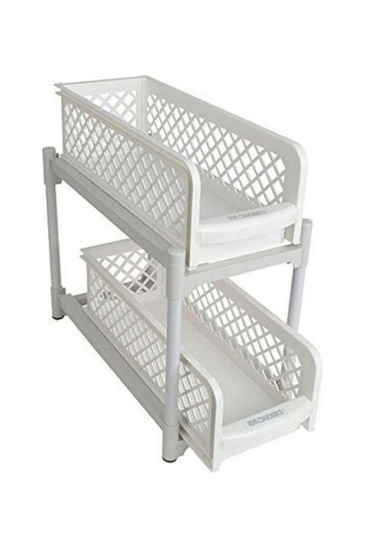 HALAMODO رف منزلق تحت الحوض، طبقتان، أبيض اللون