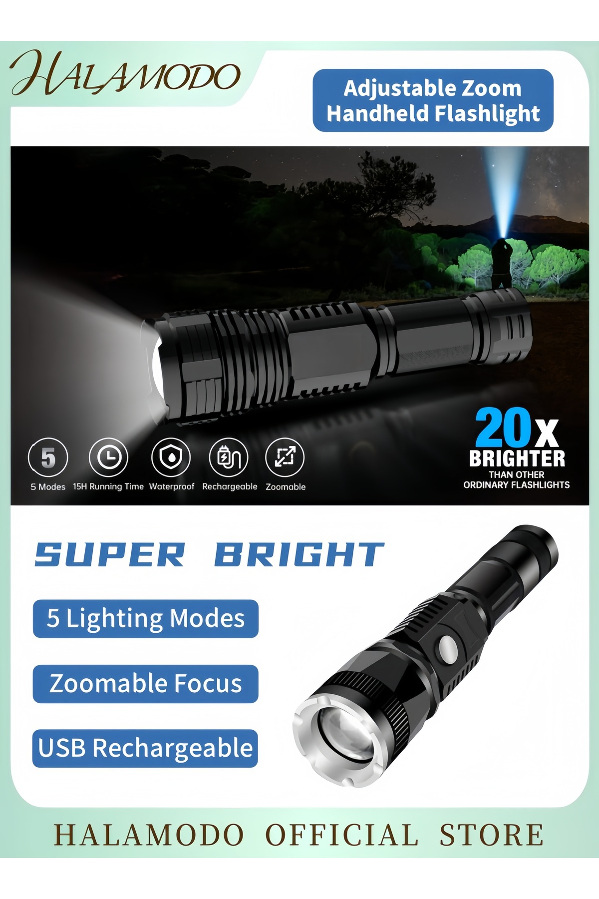 ميزات مصباح يدوي USB للشحن أسود 15 سم من HALAMODO
