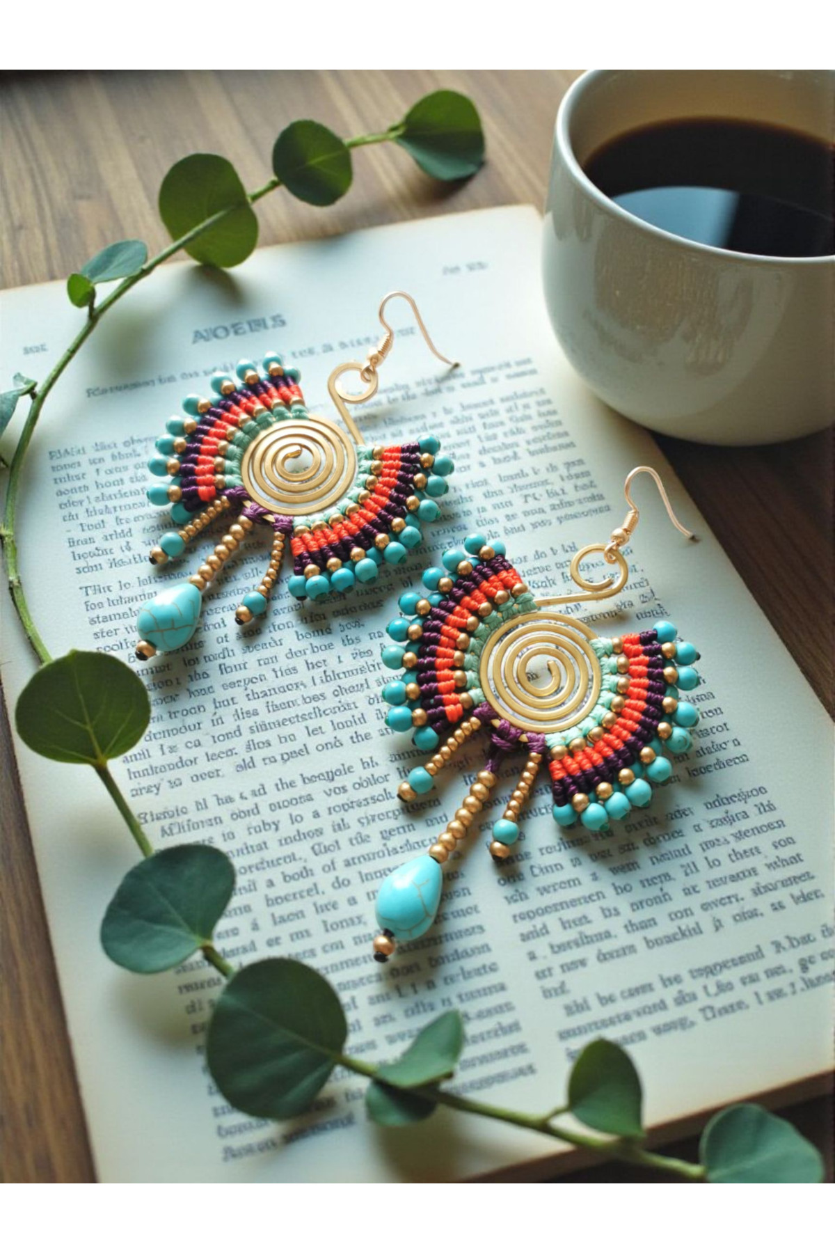 ميزات أقراط نحاسية من نوع سولار فانوس مصنوعة من المكرامية من Halley Concept