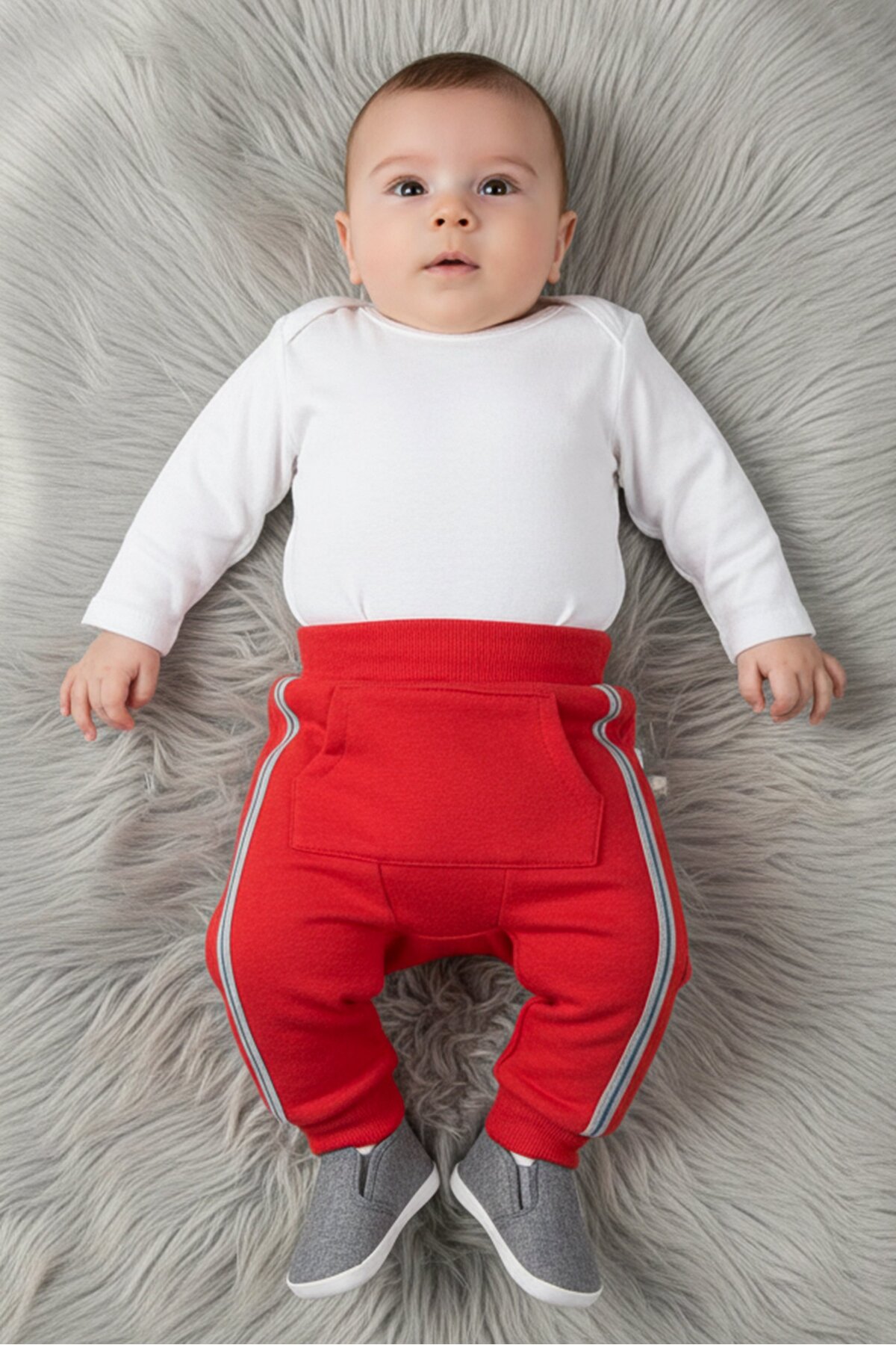 Hamleys بنطال رياضي سادة للأولاد الصغار، أحمر
