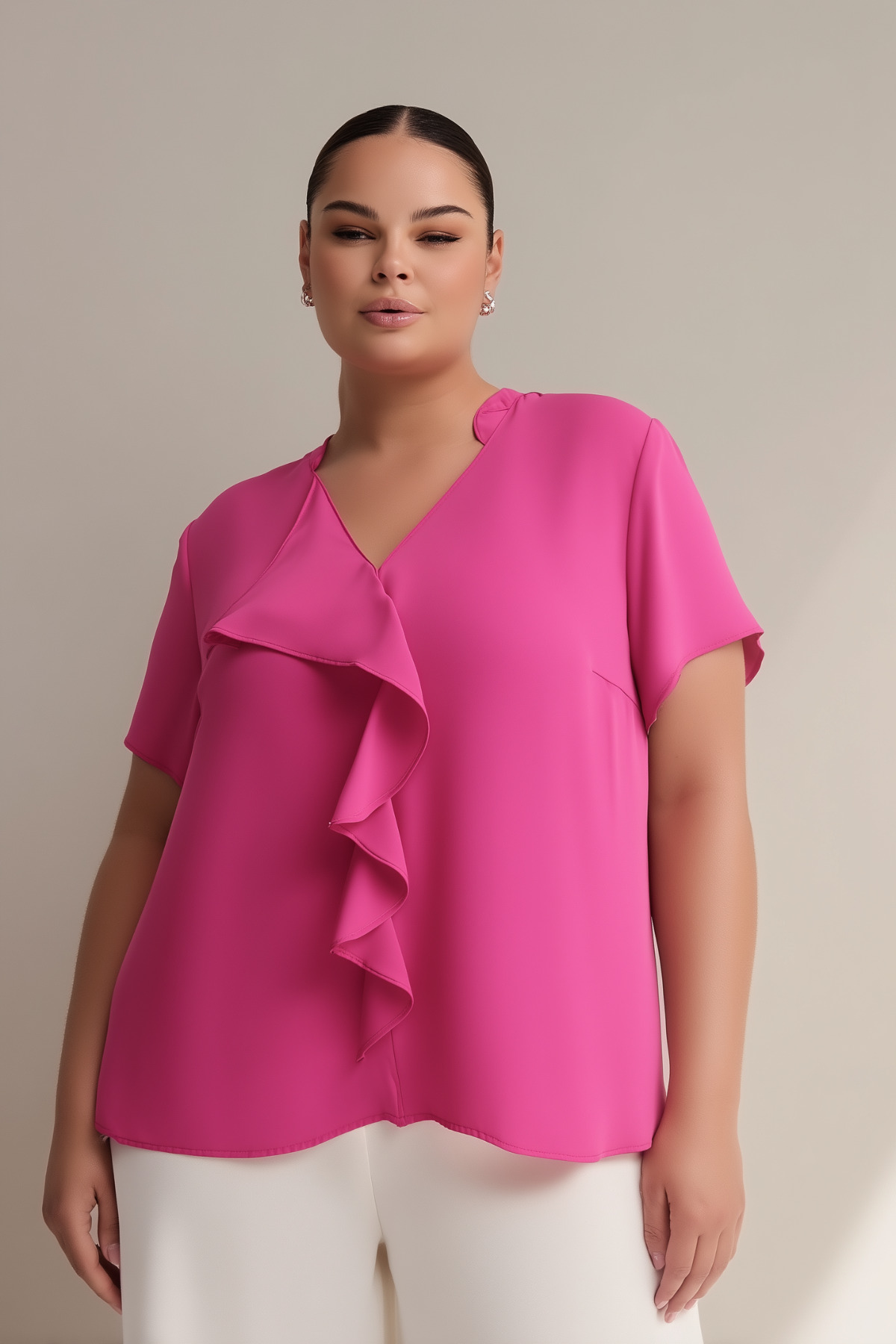 ميزات بلوزة مكشكشة أمامية برقبة على شكل حرف V من Hanezza