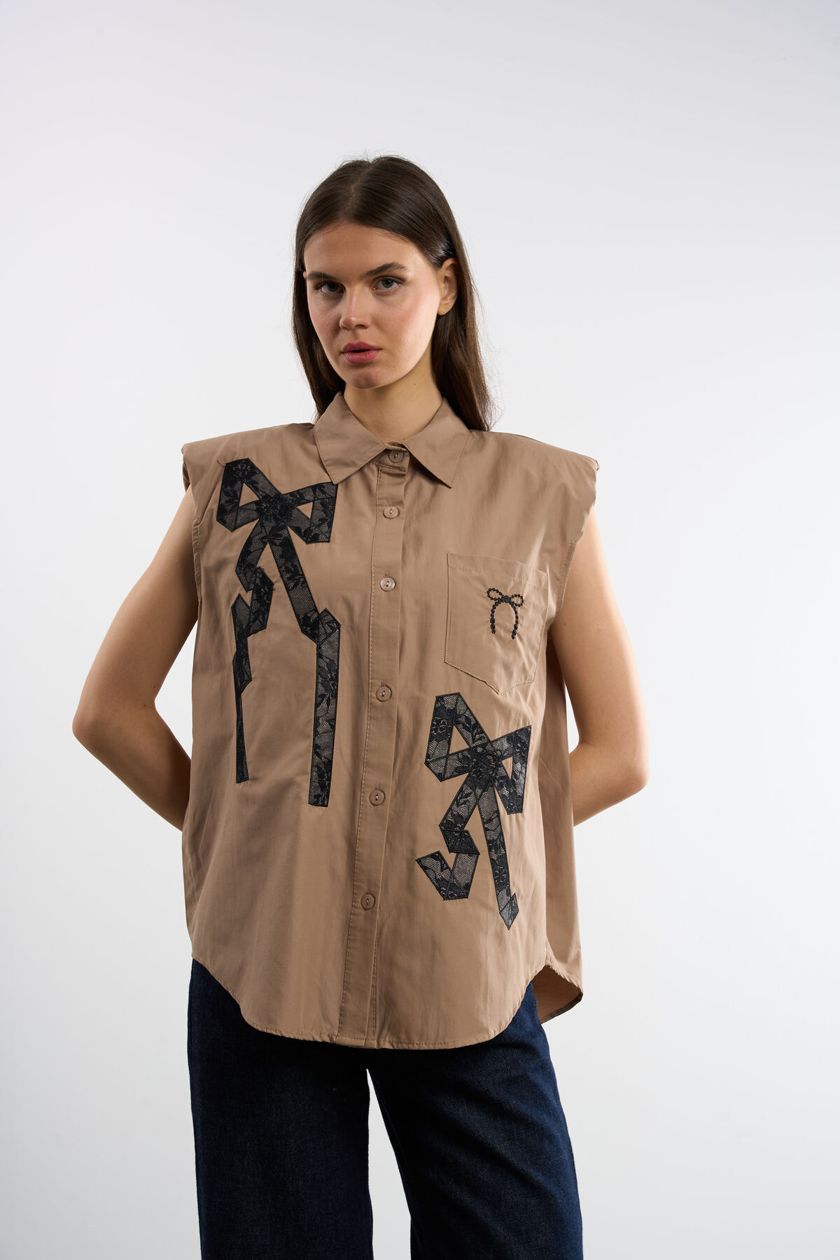 ميزات قميص بدون أكمام مطبوع عليه فيونك من HANIQA