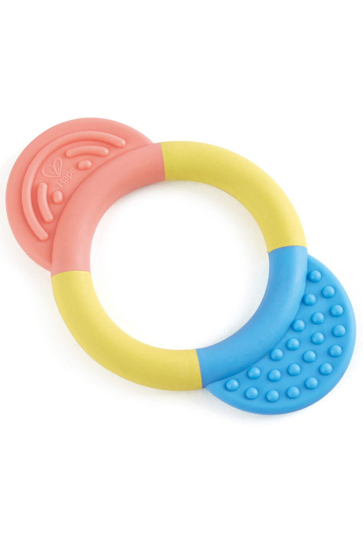 Hape حلقة عضاضة | لعبة تسنين متعددة الملمس للأطفال، ناعمة الألوان