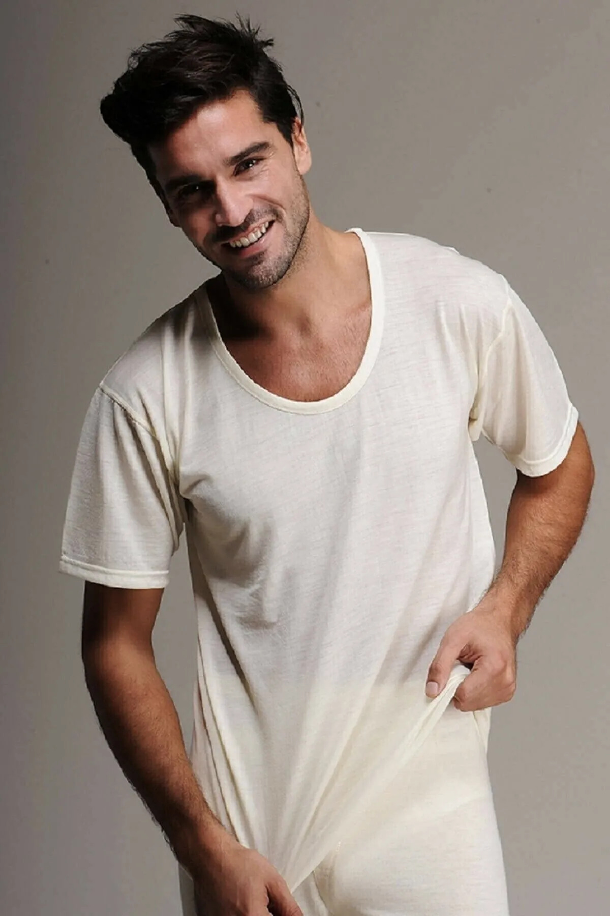 Hasyün قميص داخلي من الصوف الشتوي بأكمام قصيرة